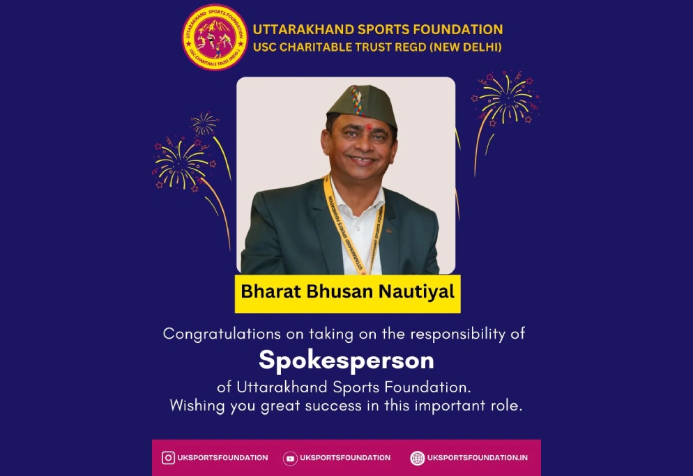 We are pleased to announce that Mr. Bharat Bhushan Nautiyal has been appointed as Spokesperson of the Uttarakhand Sports Foundation