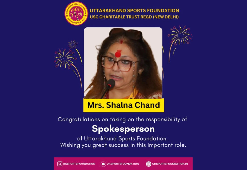 We are pleased to announce that Ms. Shalna Chand has been appointed as Spokesperson of the Uttarakhand Sports Foundation New